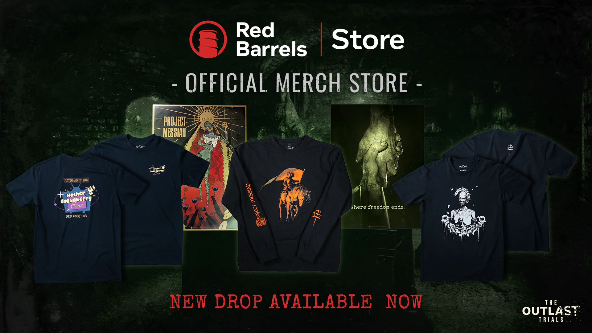 A new merch collection for The Outlast Trials is available. 💉 Inspired by Project Messiah, this drop features new designs for those ready to showcase their Therapy level for the world to see!